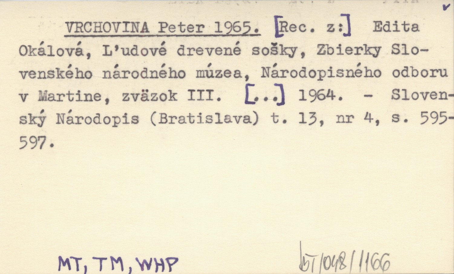 VRCHOVINA Peter 1965 Edita Okálová, Ąudové drevené soąky, Zbierky Slovenského národného múzea, Národopisného odboru v Martine, zväzok III. [...] 1964.