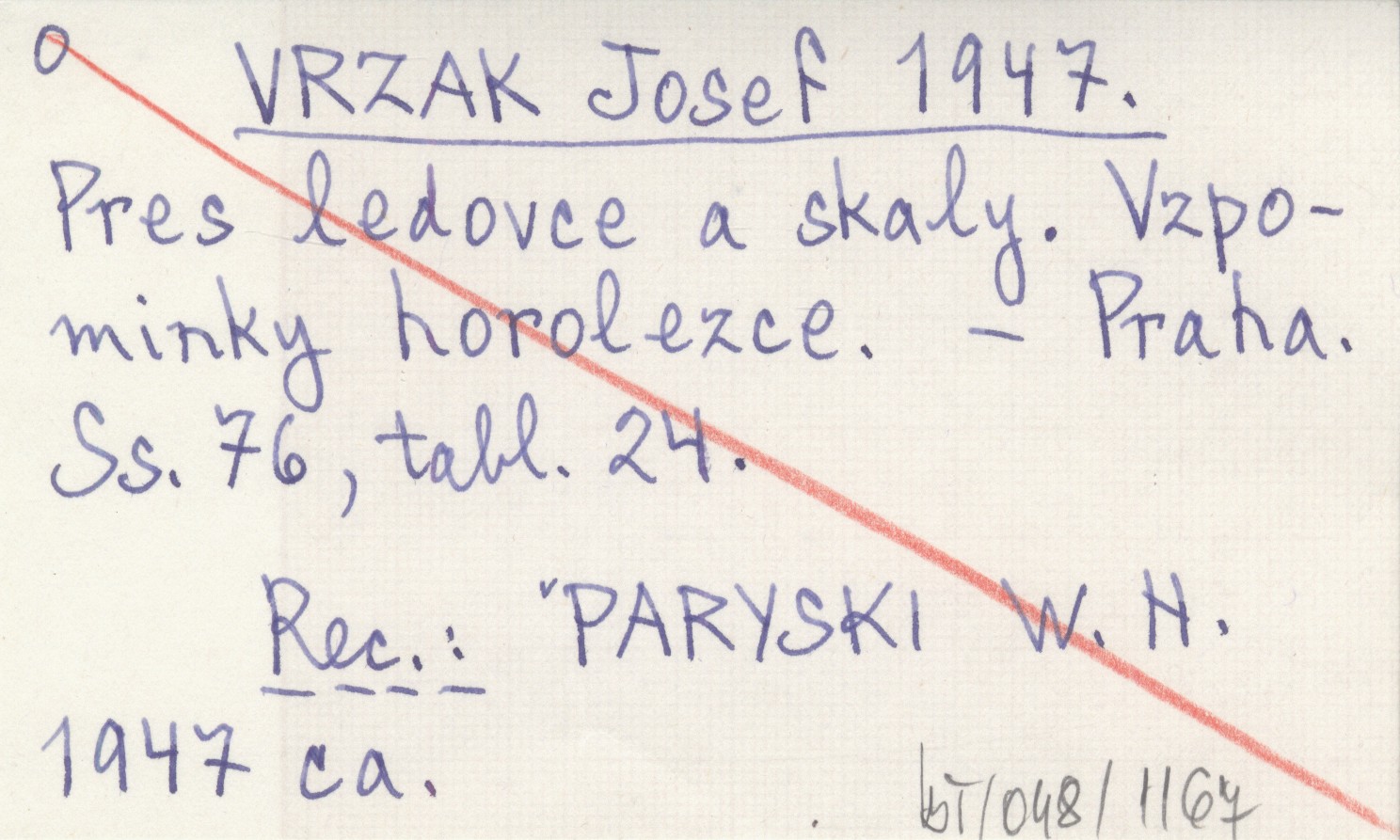 VRZAK Josef 1947 Pres ledovce a skaly. Vzpominky horolezce.