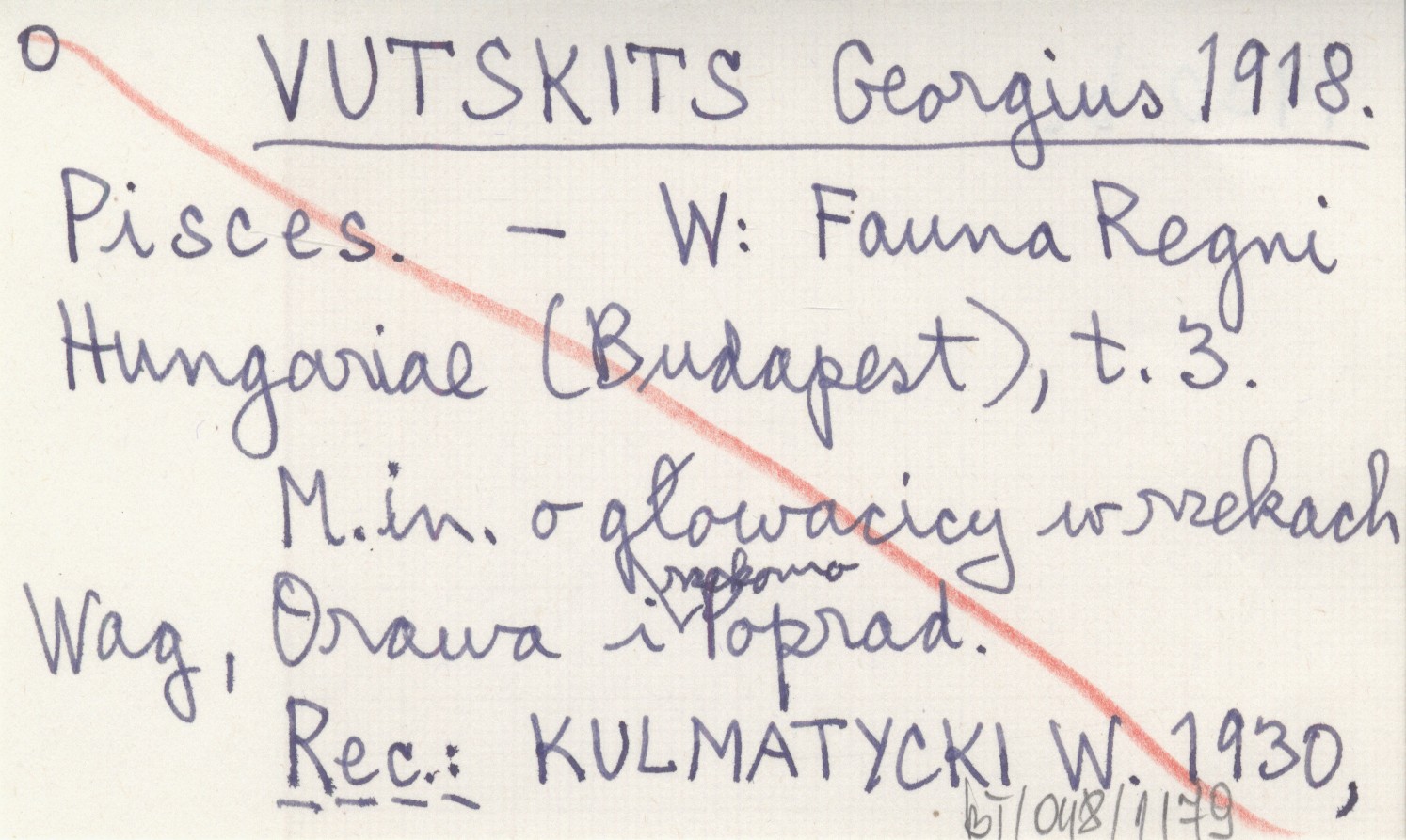 Fauna Regni Hungariae. Budapest , T. 3. M.in. o głowacicy w rzekach Wag, Orawa i rzekomo Poprad. REC: KULMATYCKI W. 1930, 1930 b