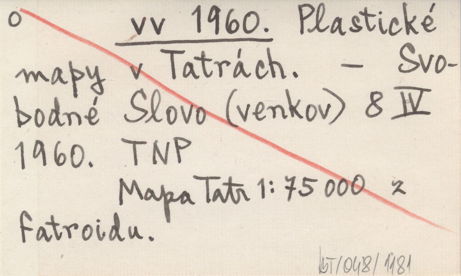 Svobodné Slovo, 8 IV 1960. Mapa Tatr 1: 75 000 z fatroidu.