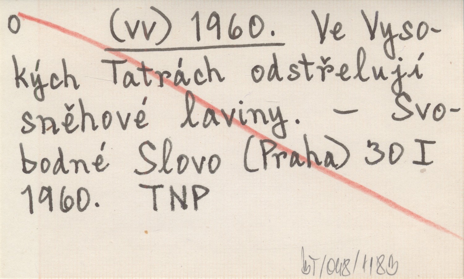 (vv) 1960 Ve Vysokých Tatrách odstřelují sněhové laviny.