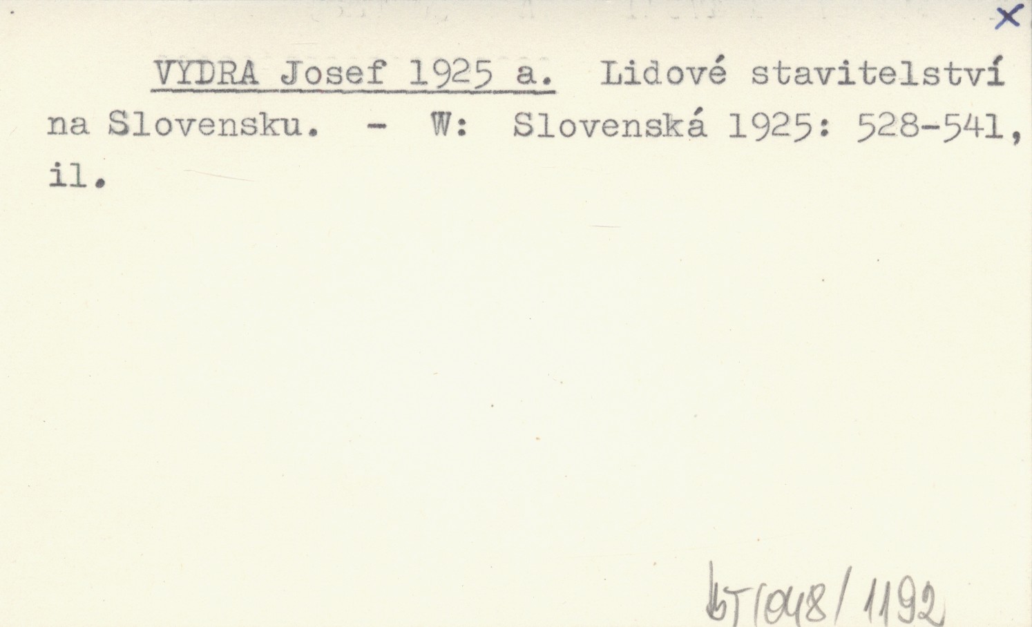 VYDRA Josef 1925 a Lidové stavitelství na Slovensku.