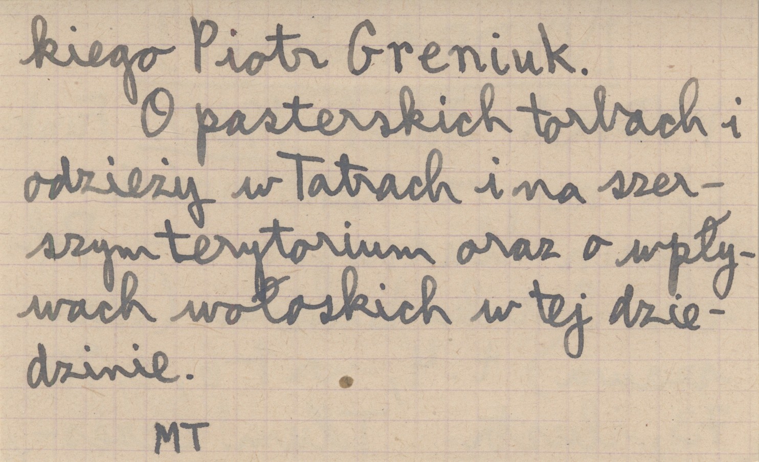 Polska Sztuka Ludowa (Warszawa) , T. 4, nr 1-6: 70-73, il. O pasterskich torbach i odzieży w Tatrach i na szerszym terytorium oraz o wpływach wołoskich w tej dziedzinie. Tłum. z czeskiego Piotr Greniuk.