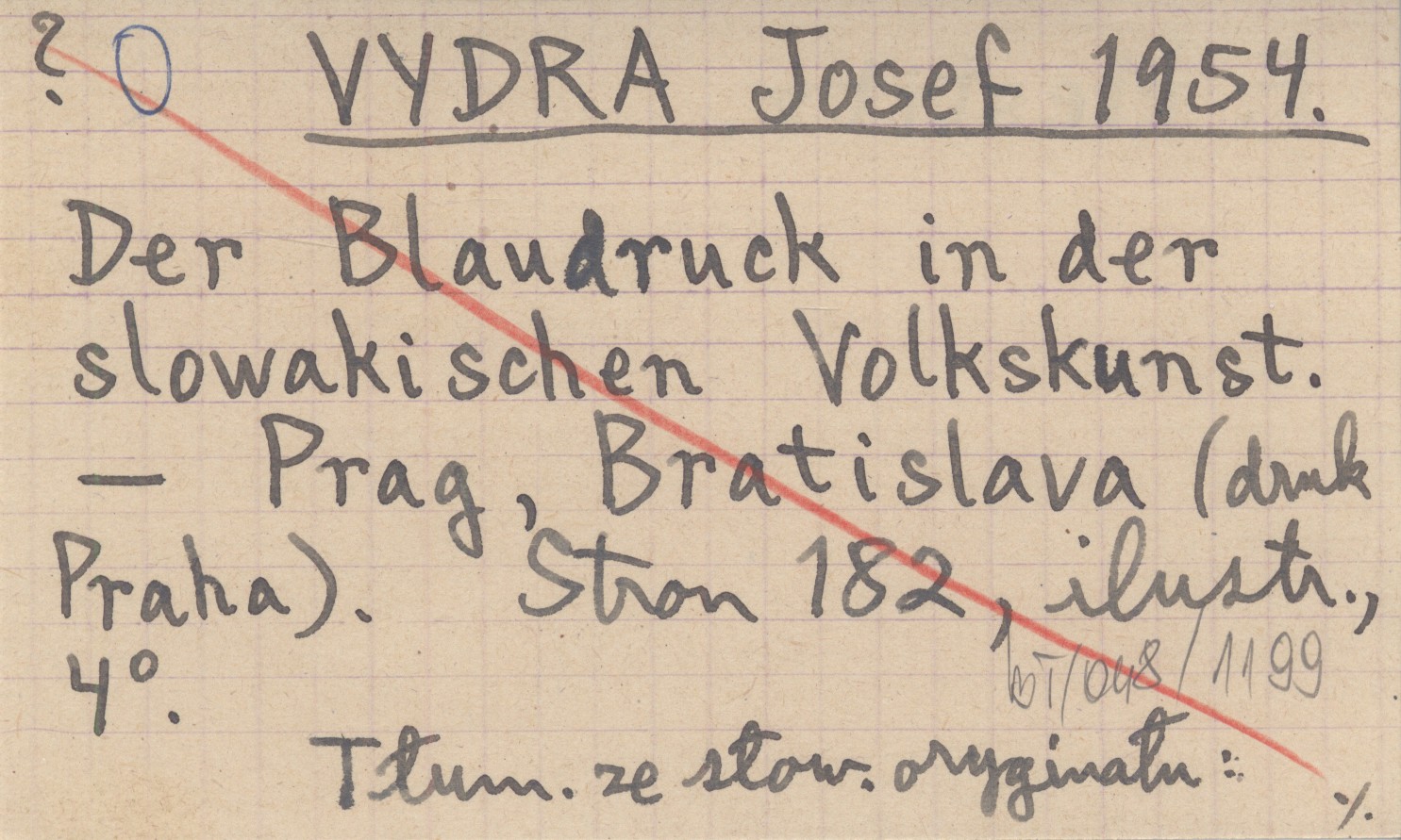 VYDRA Josef 1954 Der Blaudruck in der slowakischen Volkskunst.