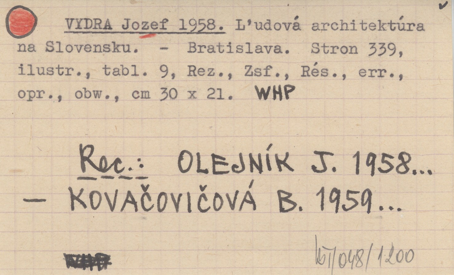 VYDRA Jozef 1958 Ľudová architektúra na Slovensku.