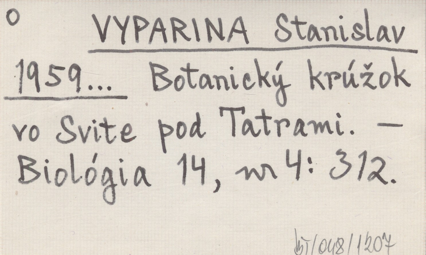 VYPARINA Stanislav 1959... Botanický krúžok vo Svite pod Tatrami.
