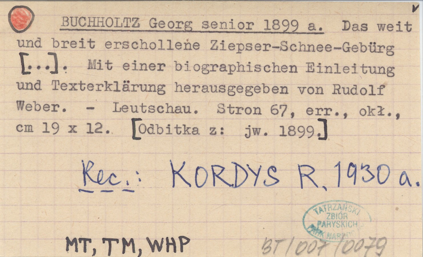 Leutschau , 67 s., err., okł., 19x12 cm. Odbitka z: jw. 1899. REC: KORDYS R. 1930 a