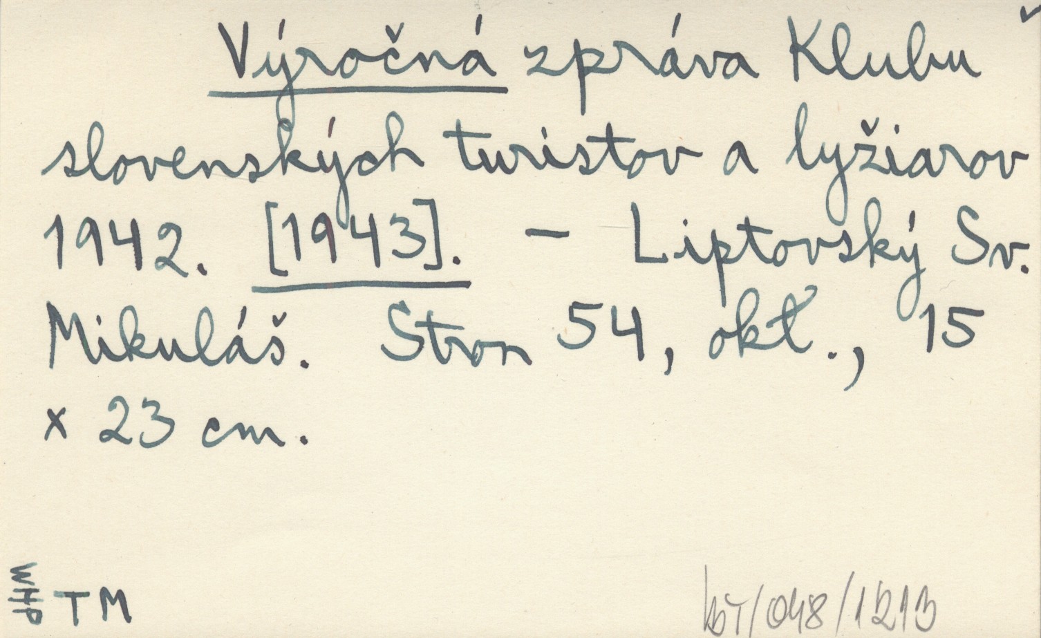 Výročná zpráva Klubu slovenských turistov a lyžiarov 1942. [1943]