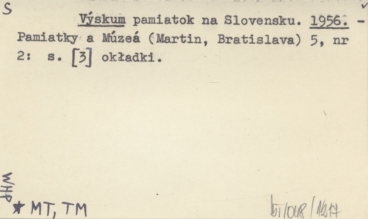 Pamiatky a Múzeá (Martin ; Bratislava ;) , 5, nr 2: [3] (okł.).