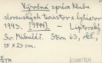 Výročná zpráva Klubu slovenských turistov a lyžiarov 1943. [1944]