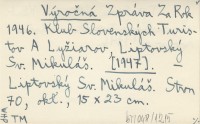 Výročná Zpráva Za Rok 1946. Klub Slovenských Turistov A Lyžiarov, Liptovský Sv. Mikuláš. [1947]