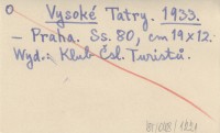 Vysoké Tatry. 1933
