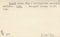 Vysoké Tatry měly o velikonocích rekordní návštěvu. 1938