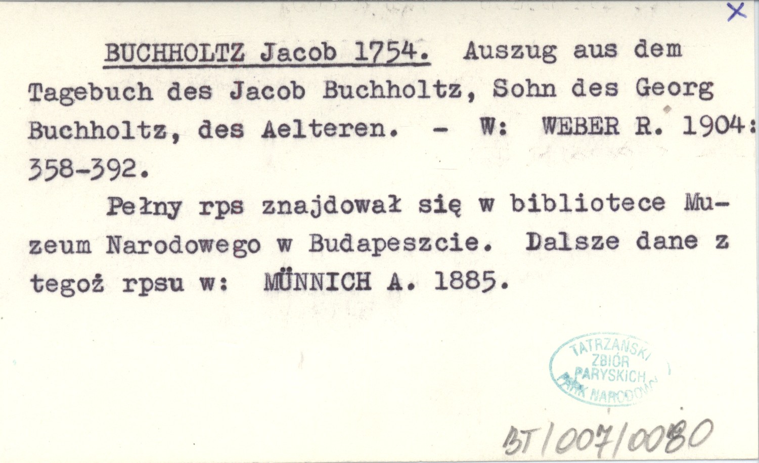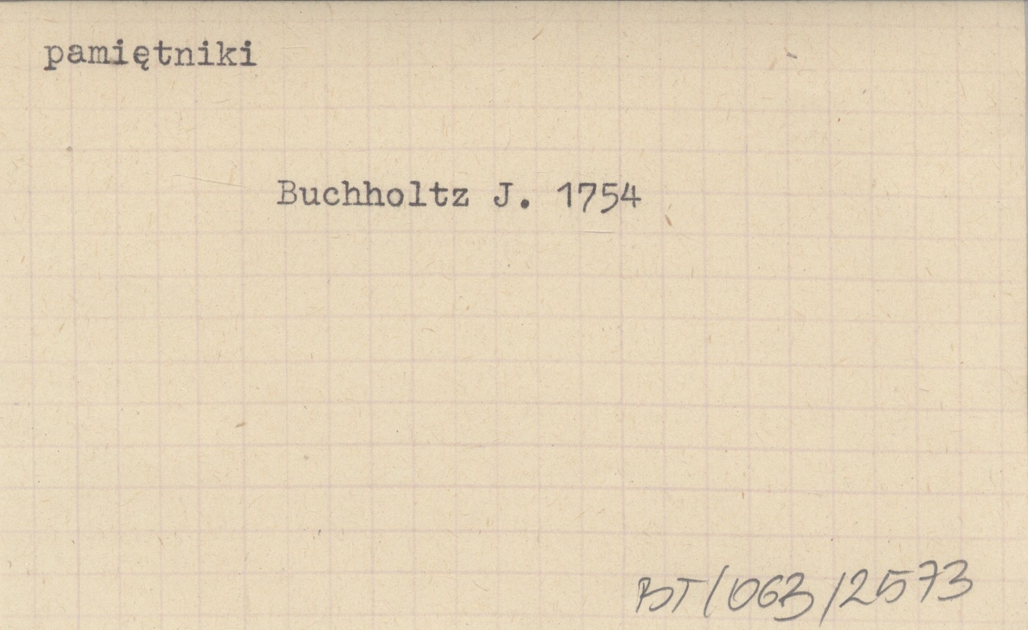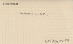 BUCHHOLTZ Jacob 1754 Auszug aus dem Tegebuch des Jacob Buchholtz, Sohn des Georg Buchholtz, des Aelteren.