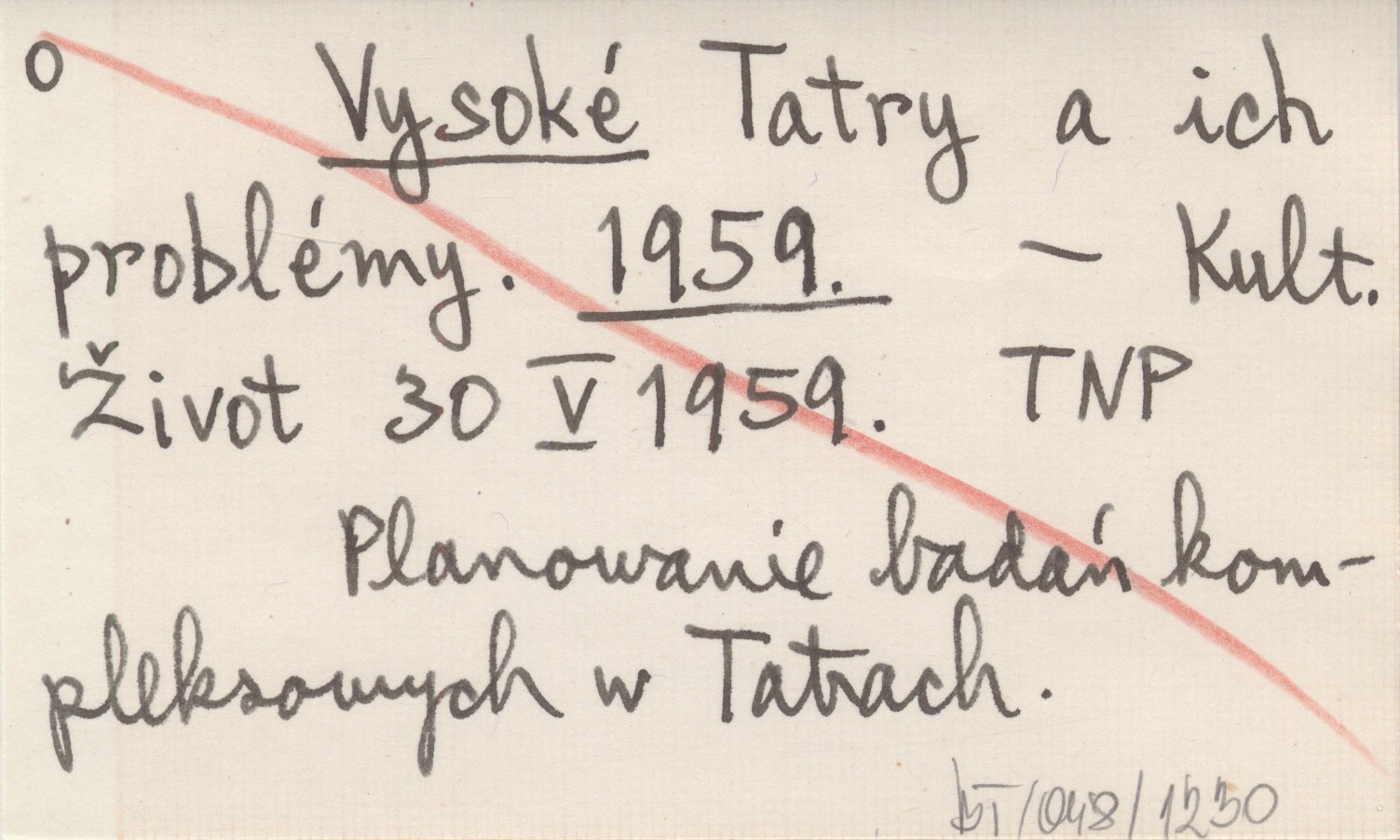 Kultúrny Život, 30 V 1959. Planowanie badań kompleksowych w Tatrach.