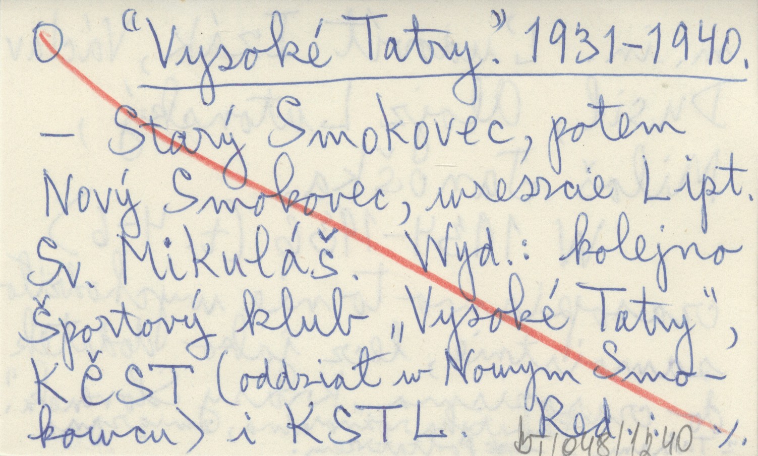 Športový klub "Vysoké Tatry", KČST (oddział w Nowym Smokowcu), KSTL, Starý Smokovec ; Nový Smokovec ; Lipt. Sv. Mikuláš ; Vysoké Tatry, 1931-1940. Tematyka różnorodna, związana z Tatrami i Podtatrzem. W 1934-1936 (t. 4-6) czasopismo to nie wychodziło samoistnie, lecz jako dodatek do czasopisma "Krásy Slovenska".