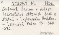 Sněhová lavina v oblasti ředitelství státních lesů a statků v Liptovském Hrádku.