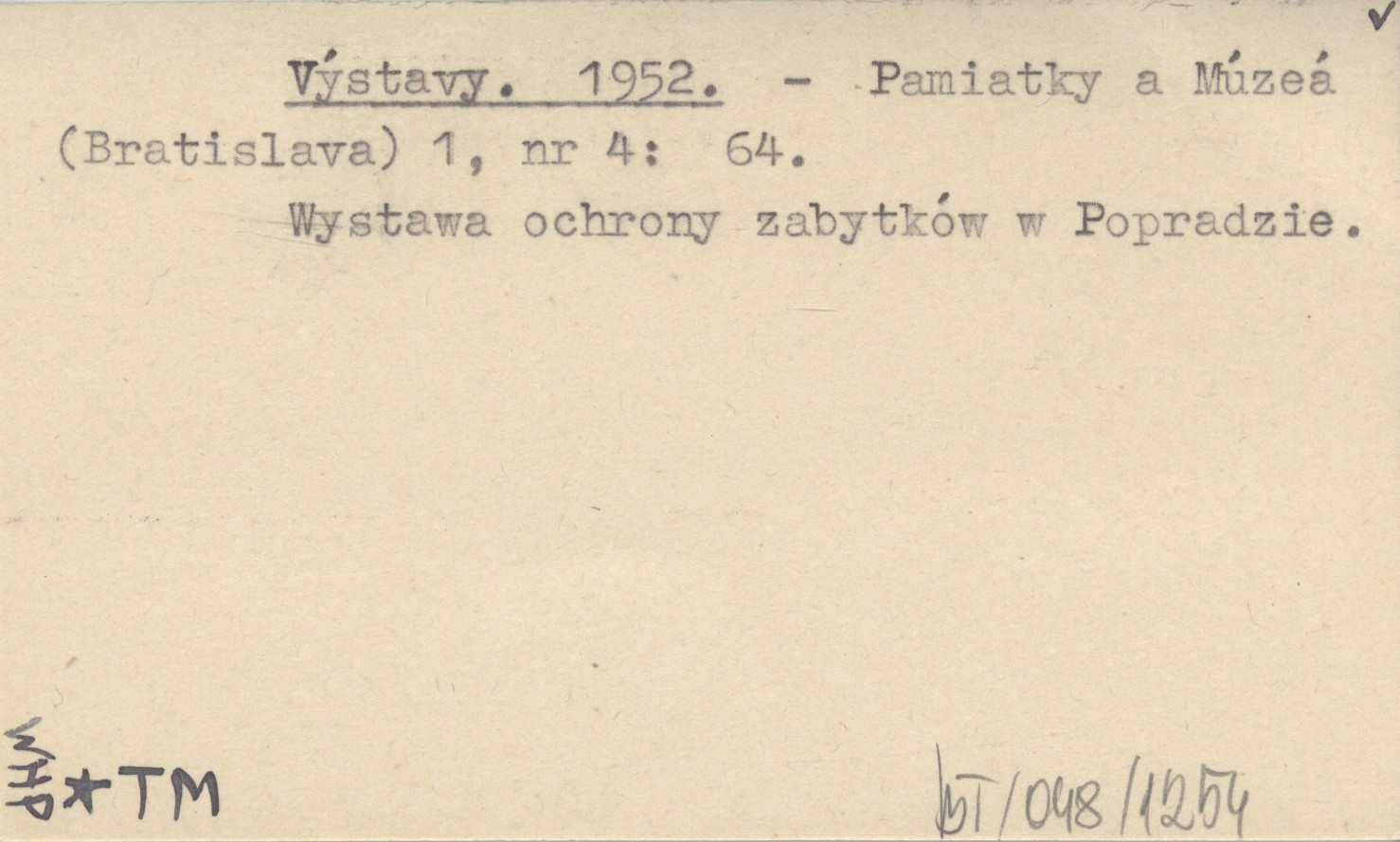 Pamiatky a Múzeá (Bratislava) , 1, nr 4: 64. Wystawa ochrony zabytków w Popradzie.