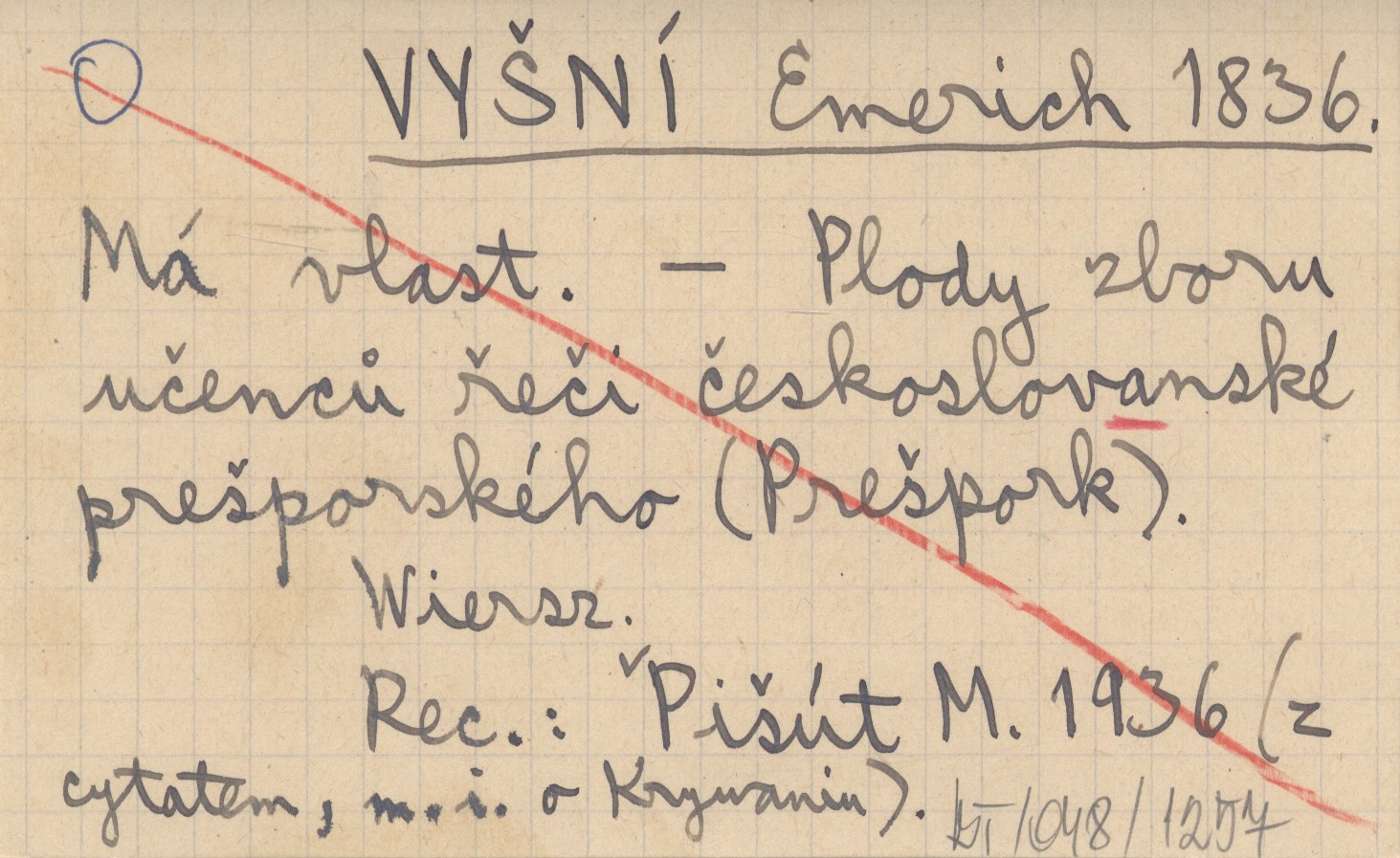 Plody zboru učenců řeči českoslovanské prešporského (Prešpork) , Wiersz. REC: PIŠÚT M. 1936 (z cytatem, m.i. o Krywaniu)
