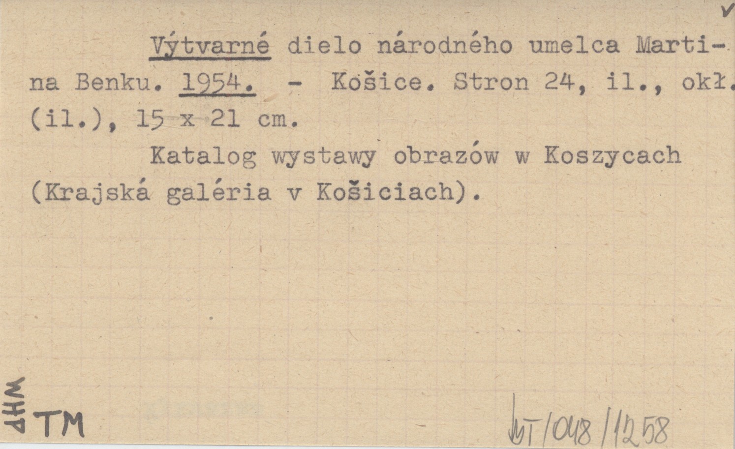 Výtvarné dielo národného umelca Martina Benku. 1954