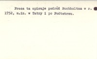 Anton Löwe, Ungr. Mag., 4, nr 3: 257-292. Praca ta opisuje podróż Buchholtza w r. 1852, m. in. w Tatry i po Podtatrzu. Opis ten jest ogłoszony z pewnymi skrótami, porobionymi przez redaktora (Karl Gottlieb von Windisch), który zaopatrzył też pracę w komentarze w formie przypisków podpisanych S. (=Schriftleiter?).