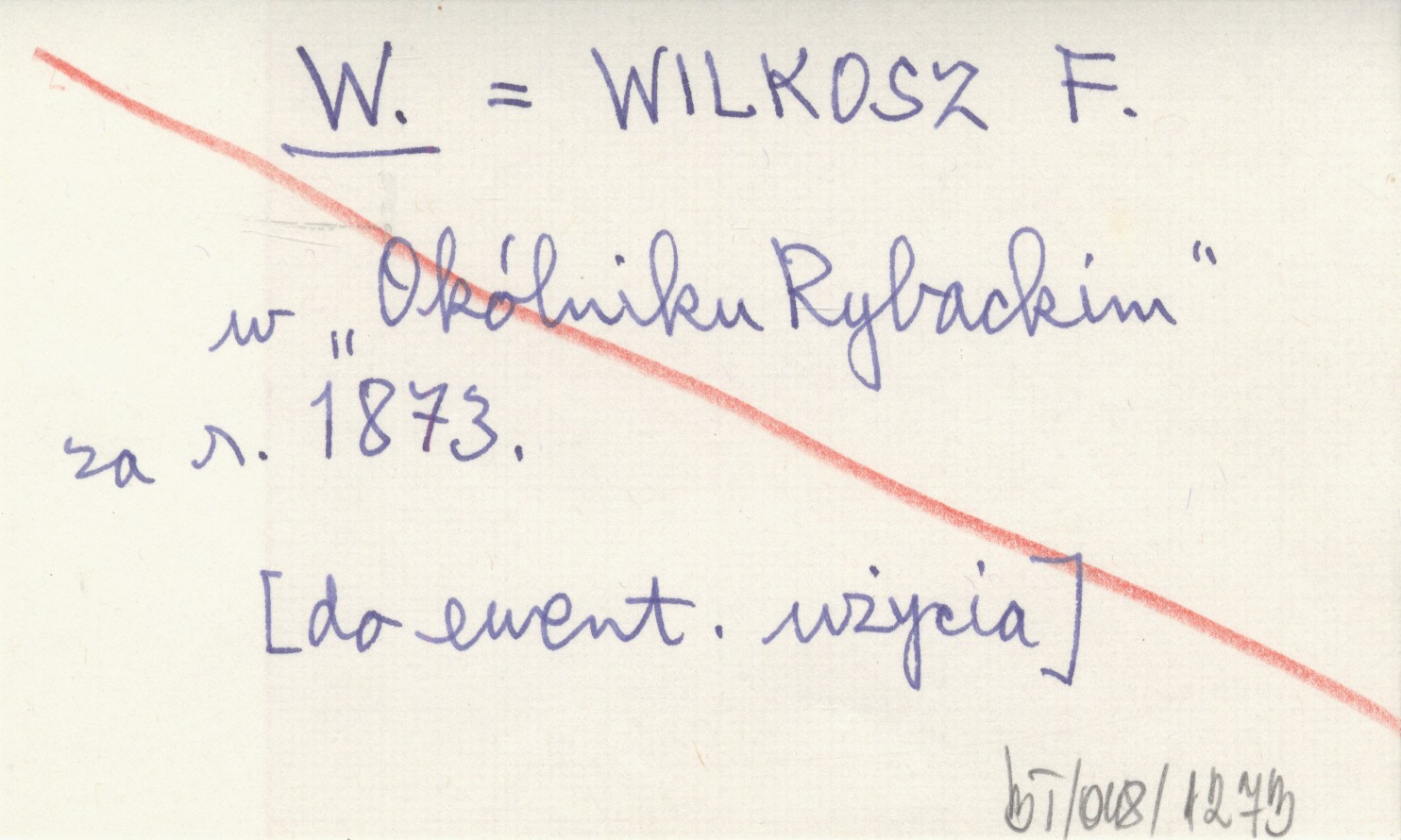 W. WILKOSZ F. Okólnik Rybacki R. 1873. [do ewent. użycia]