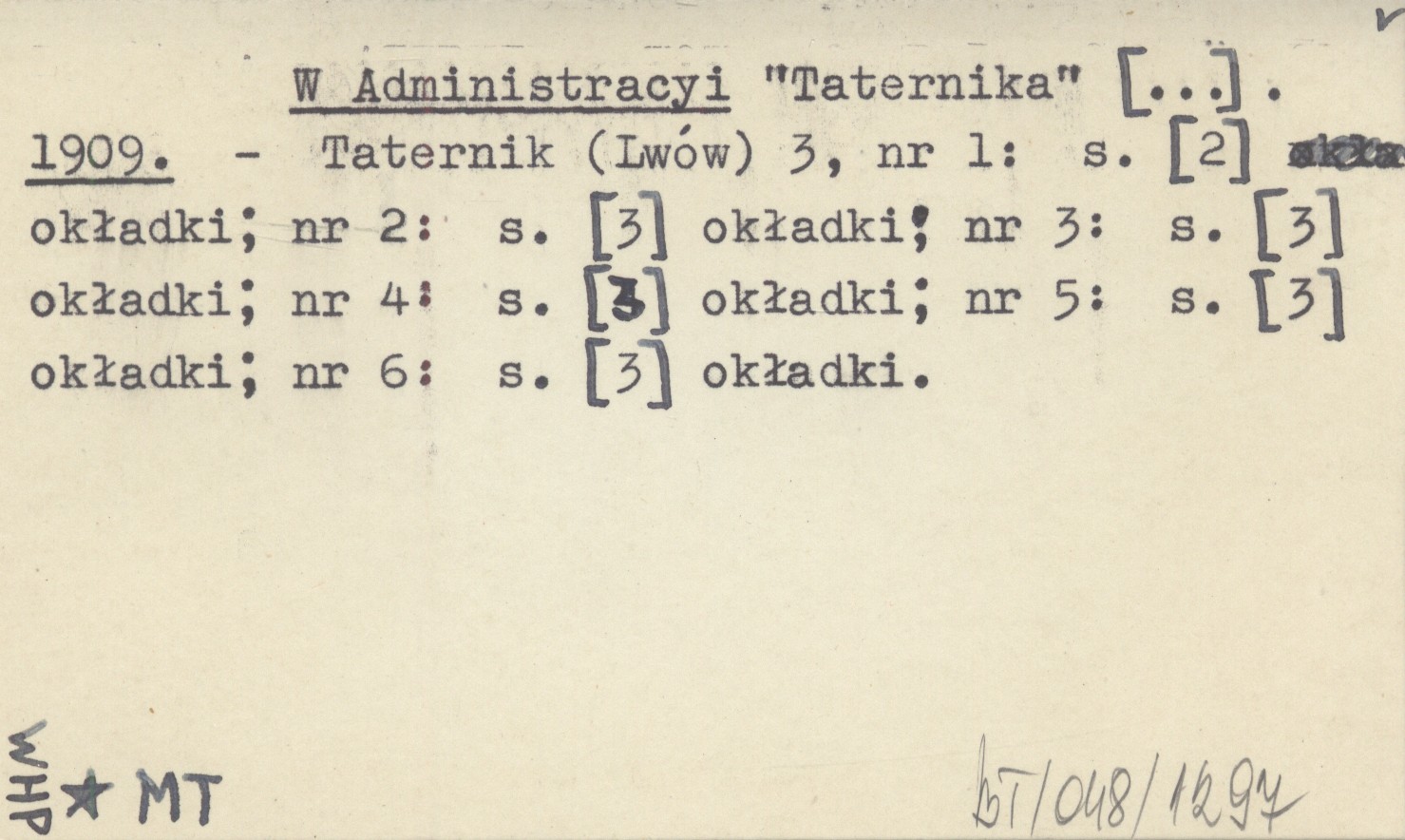 Taternik (Lwów) , 3, nr 1: [2] (okł.) ; nr 2: [3] (okł.) ; nr 3: [3] (okł.) ; nr 4: [3] (okł.) ; nr 5: [3] (okł.) ; nr 6: [3] (okł.).