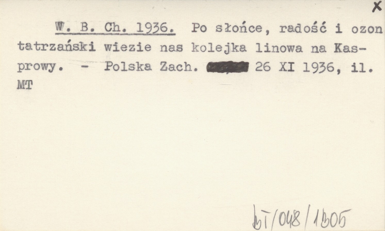 W. B. Ch. 1936 Po słońce, radość i ozon tatrzański wiezie nas kolejka linowa na Kasprowy.