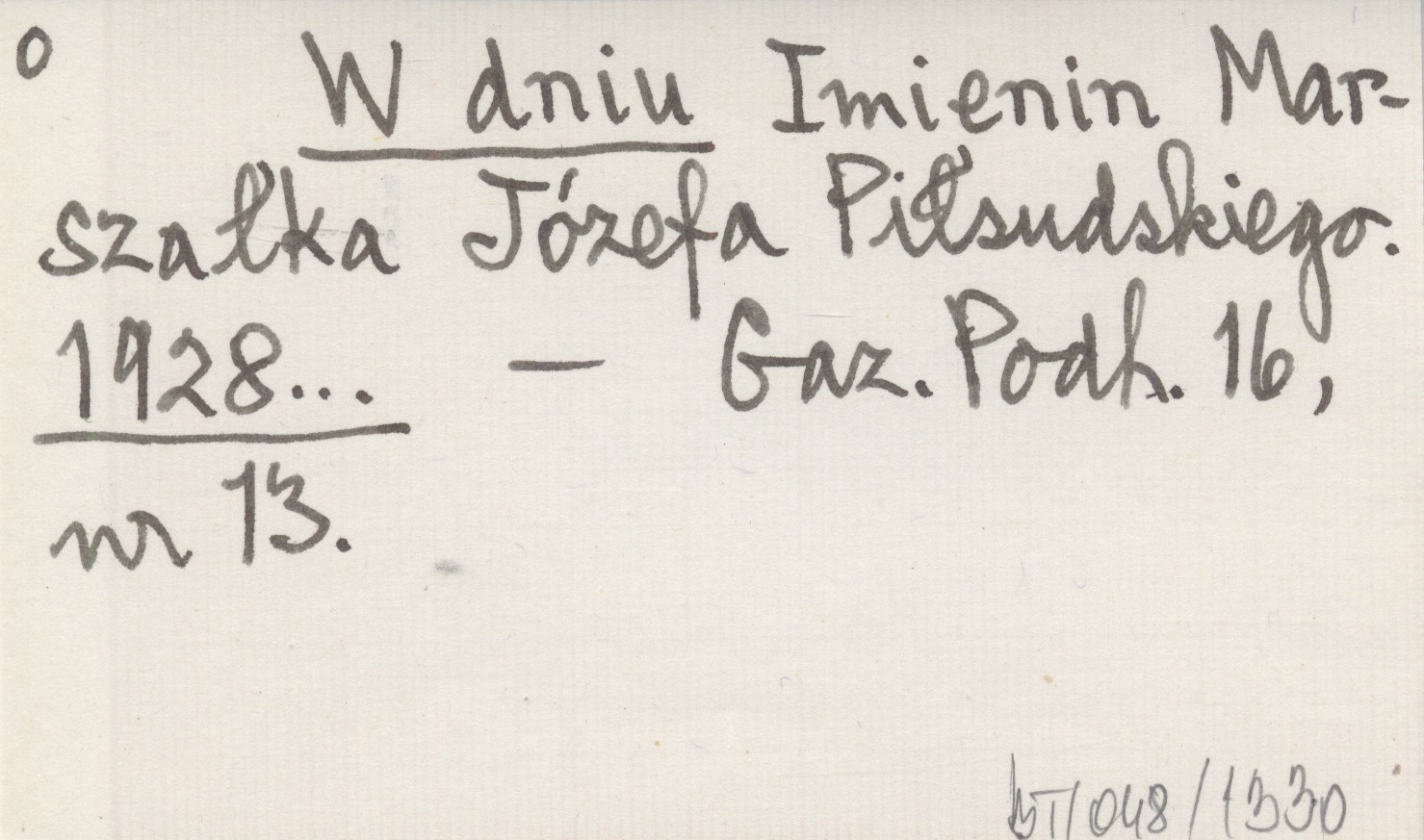 W dniu Imienin Marszałka Józefa Piłsudskiego. 1928...