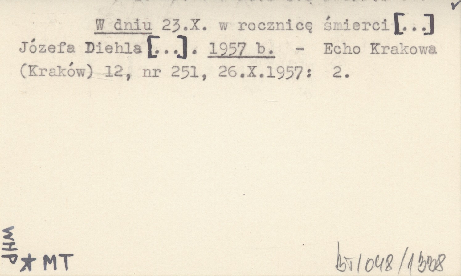 W dniu 23.X. w rocznicę śmierci [...] Józefa Diehla [...]. 1957 b