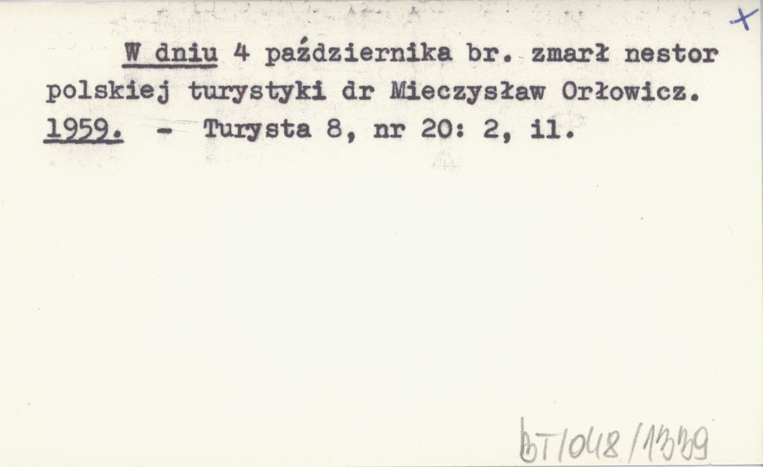 W dniu 4 października br. zmarł nestor polskiej turystyki dr Mieczysław Orłowicz. 1959