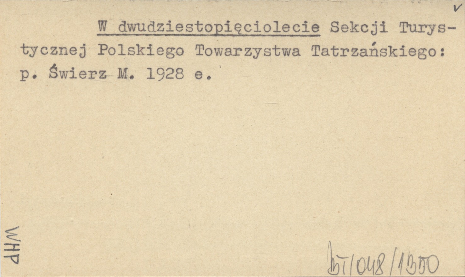 W dwudziestopięciolecie Sekcji Turystycznej Polskiego Towarzystwa Tatrzańskiego.