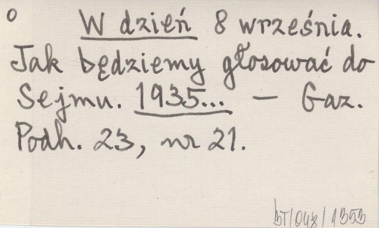 W dzień 8 września. Jak będziemy głosować do Sejmu. 1935...