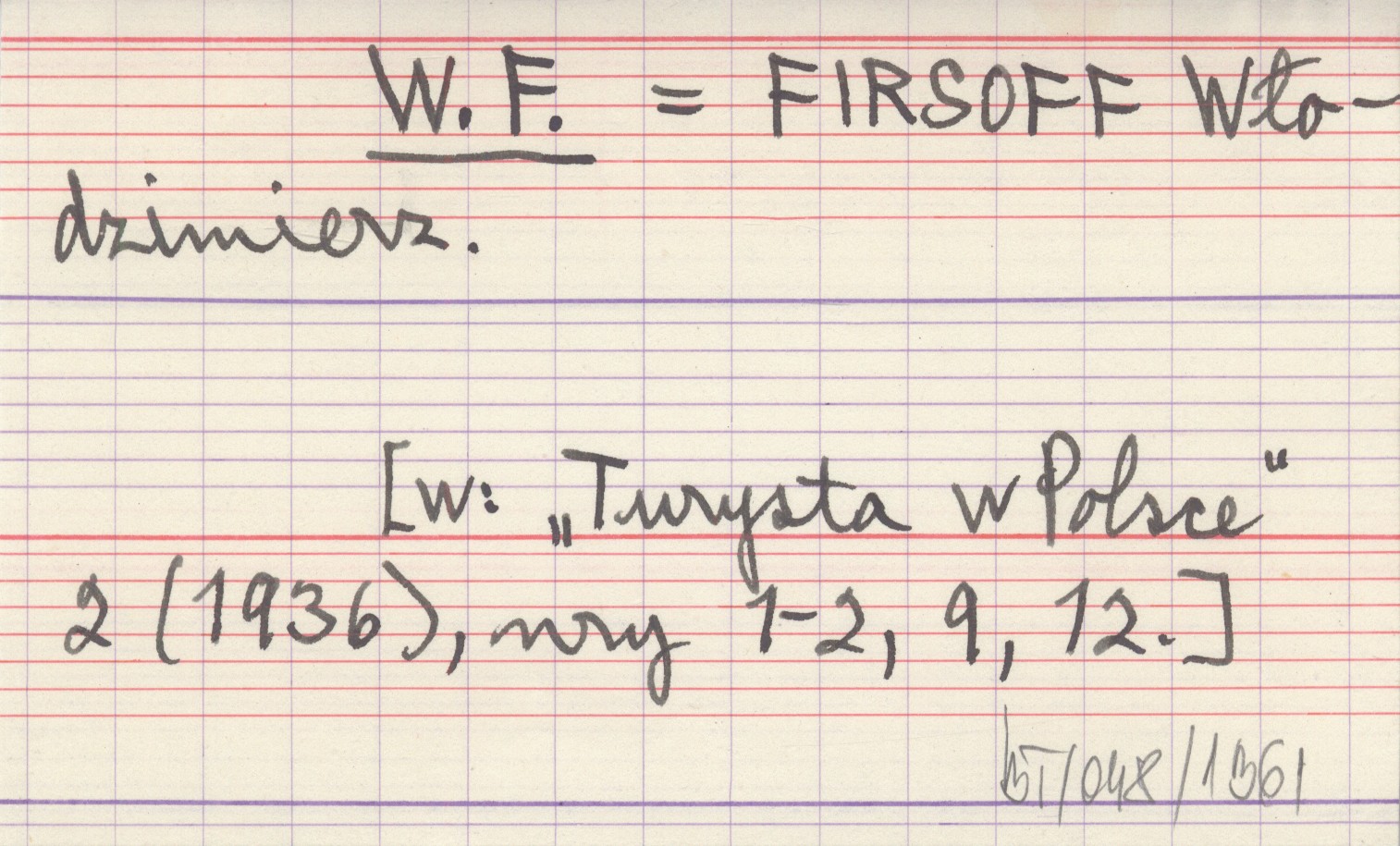 W. F. FIRSOFF Włodzimierz Turysta w Polsce 2 (1936), nr 1-2, 9, 12.