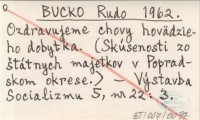 BUCKO Rudo 1962 Ozdravujeme chovy hovädzieho dobytka. (Skúsenosti zo štátnych majetkov v Popradskom okrese.)