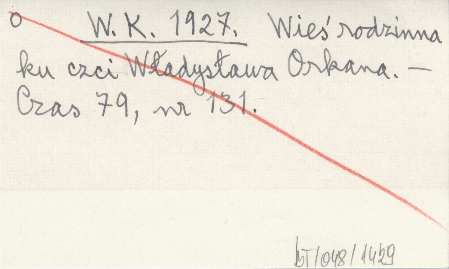 W. K. 1927 Wieś rodzinna ku czci Władysława Orkana.