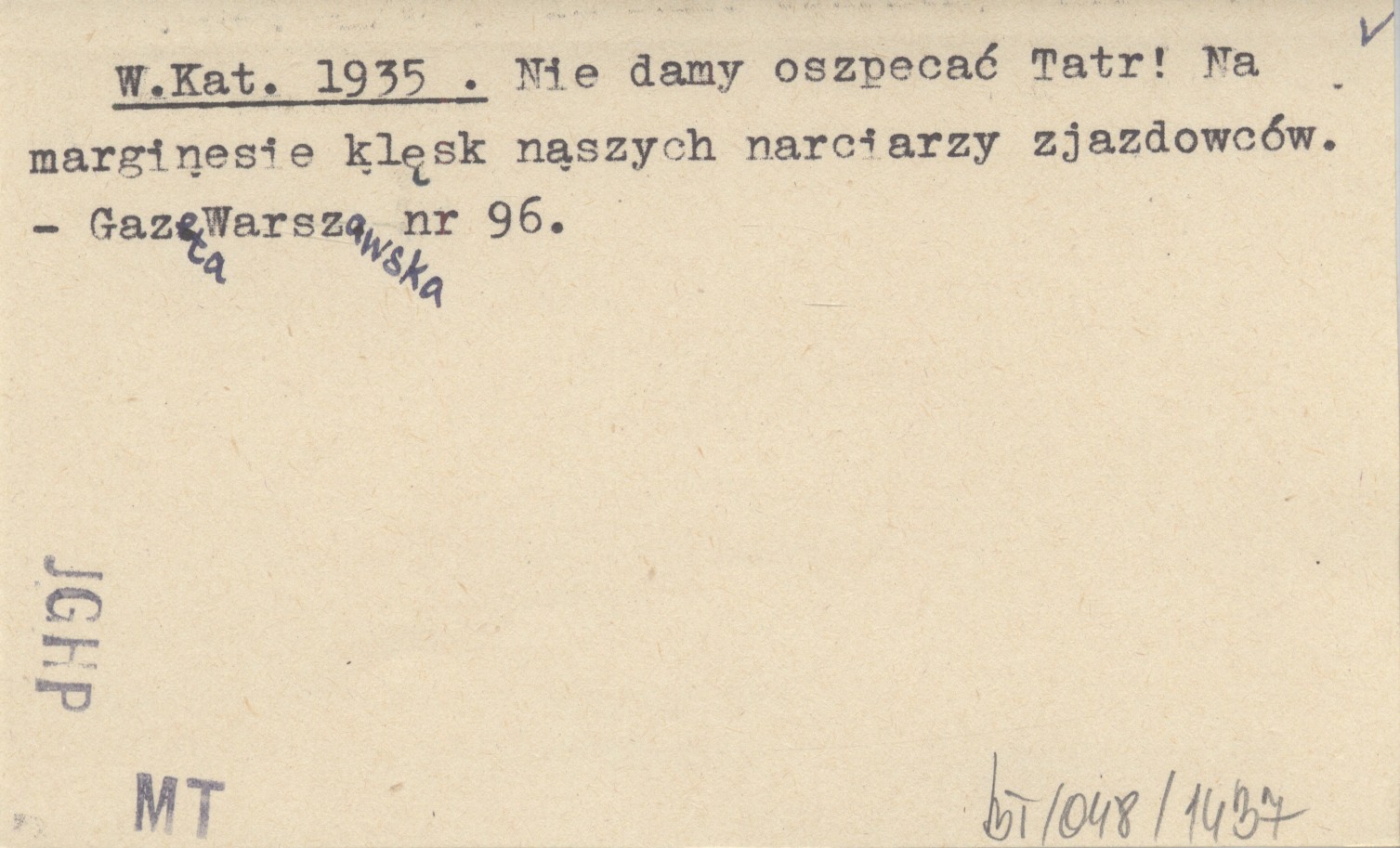W.Kat. 1935 Nie damy oszpecać Tatr! Na marginesie klęsk naszych narciarzy zjazdowców.