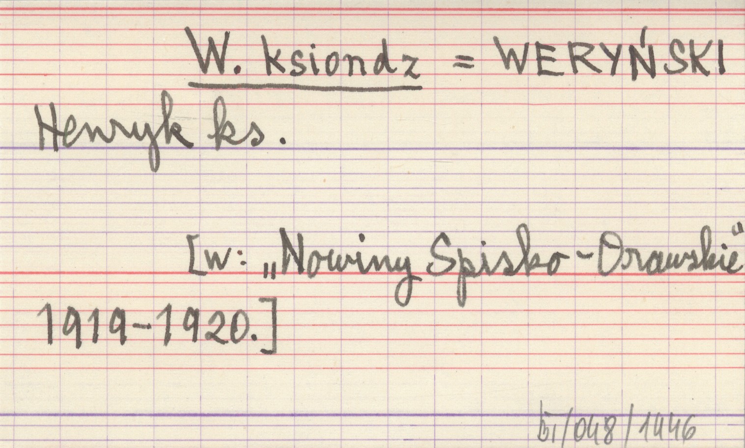 W. ksiondz WERYŃSKI Henryk ks. Nowiny Spisko-Orawskie 1919-1920.