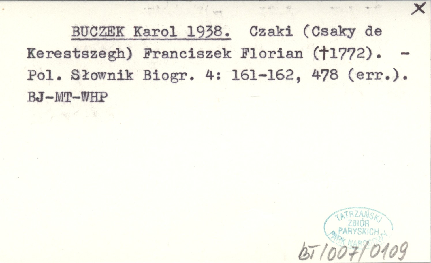 BUCZEK Karol 1938 Czaki (Csaky de Kerestszegh) Franciszek Florian (+1772).