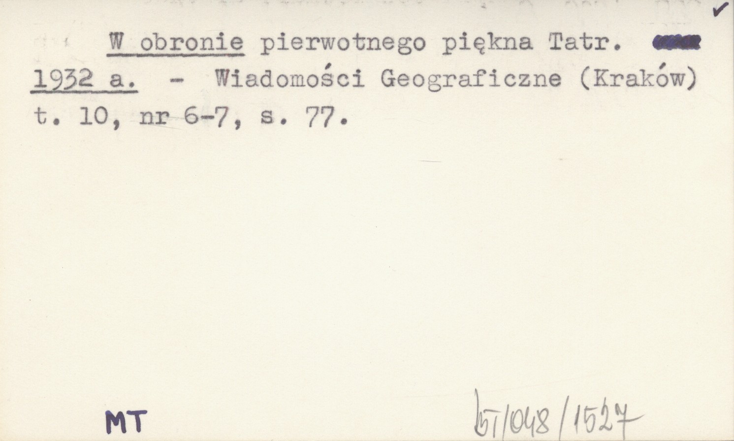 Wiadomości Geograficzne (Kraków) , T. 10, nr 6-7: 77.