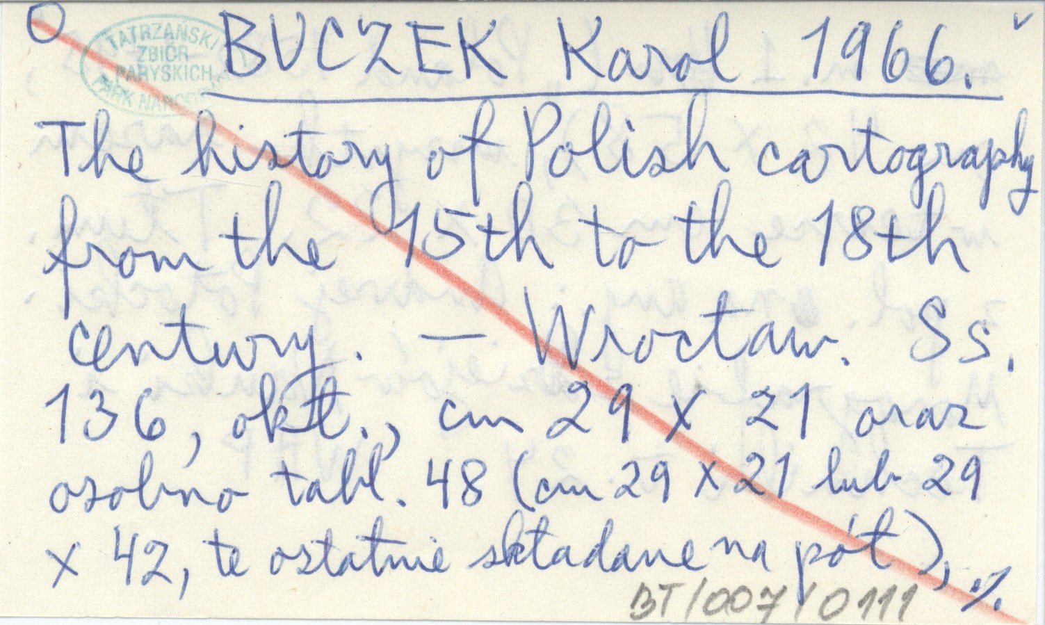 BUCZEK Karol 1966 The history of Polish cartography from the 15th to the 18th century.