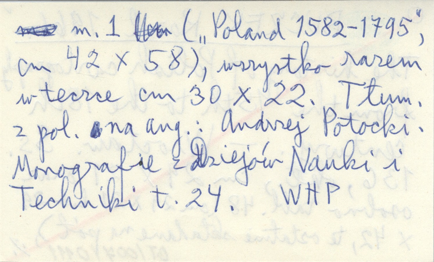 Wrocław , 136 s., okł., 29x21 cm ; 48 k., 29x21 cm lub 29x42 cm (skłądane na pół), 1 mapa ("Poland 1582-1795", 42x58 cm). Wszystko razem w teczce 30x22 cm. tłum. z pol. na ang.: Andrzej Potocki. Monografie z Dziejów Nauki i Techniki t. 24.