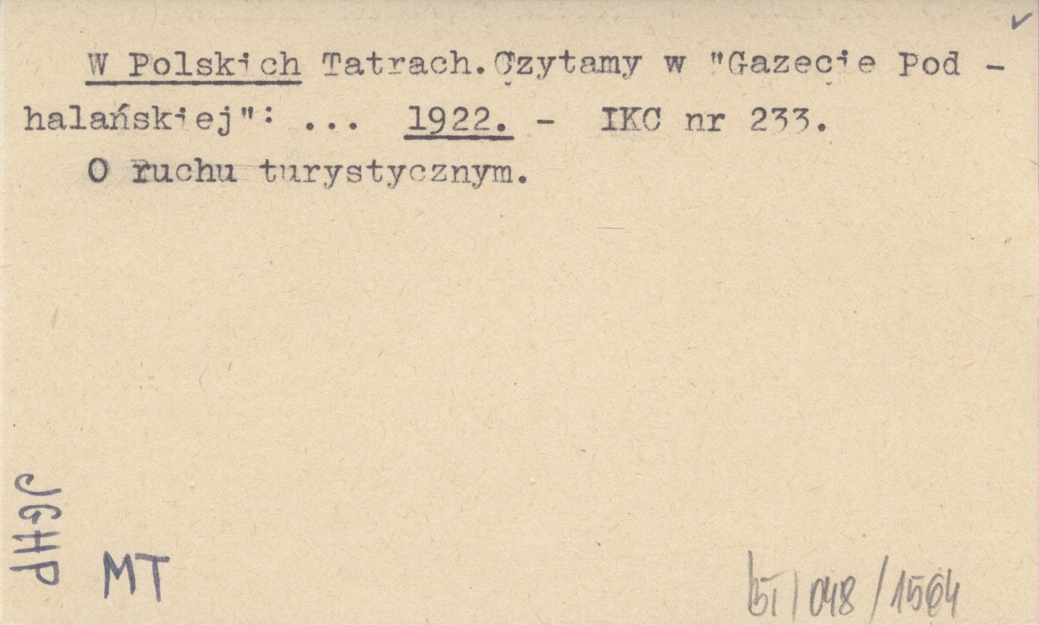 W Polskich Tatrach.Czytamy w "Gazecie Podhalańskiej": ... 1922