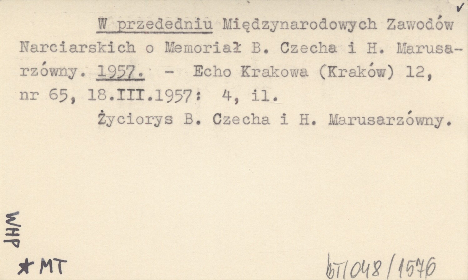 Echo Krakowa (Kraków) , 12, nr 65, 18 III 1957: 4, il. Życiorys B. Czecha i H. Marusarzówny.
