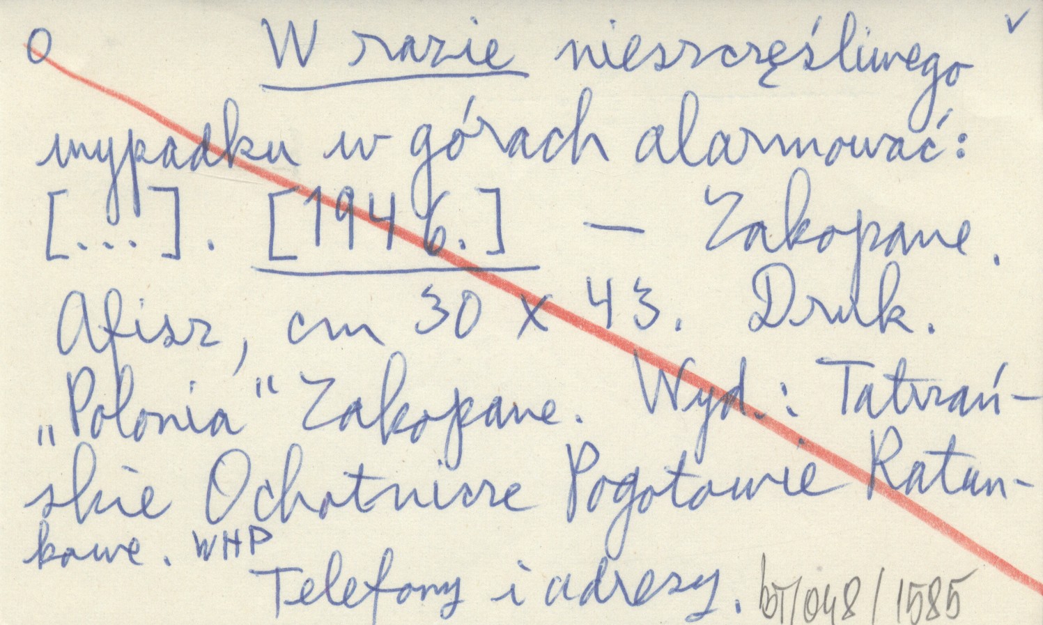W razie nieszczęśliwego wypadku w górach alarmować: [...]. [1946]