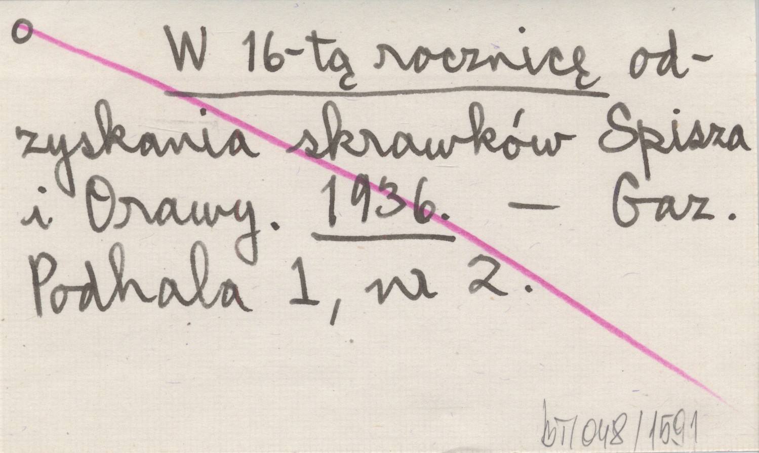W 16-tą rocznicę odzyskania skrawków Spisza i Orawy. 1936