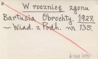 W rocznicę zgonu Bartusia Obrochty. 1927
