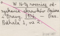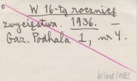 W 16-tą rocznicę odzyskania skrawków Spisza i Orawy. 1936
