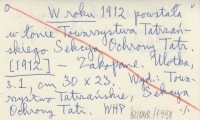 W roku 1912 powstała w łonie Towarzystwa Tatrzańskiego Sekcya Ochrony Tatr. [1912]