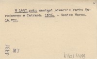 Projekt Digitalizacja fiszek z Bibliografią Tatr i Podtatrza Witolda Henryka Paryskiego jest finansowany ze środków Ministra Kultury i Dziedzictwa Narodowego oraz Tatrzańskiego Parku Narodowego.